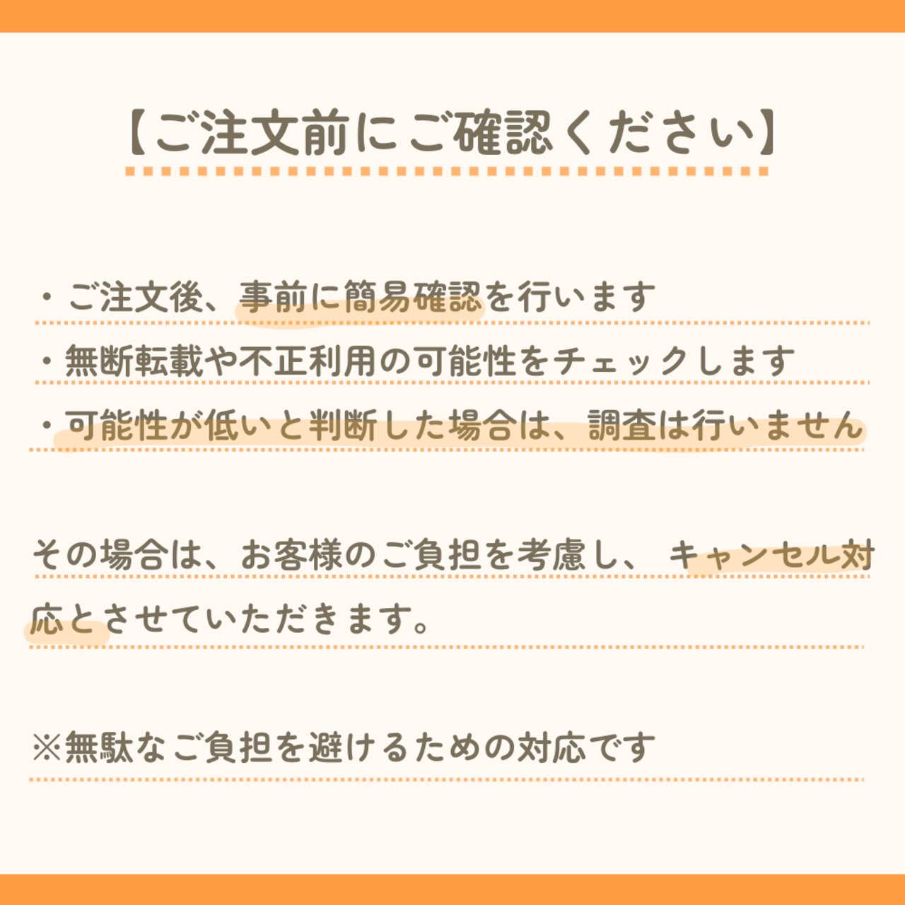 無断使用や転売が確認された場合